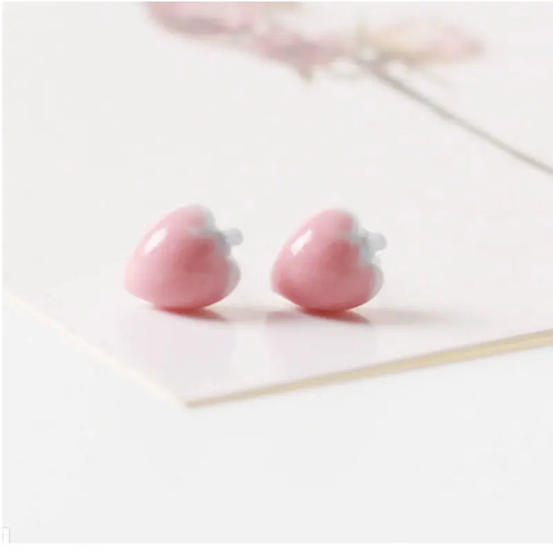 K043 бигбинг ювелирные изделия Модные розовые керамические серьги-гвоздики в виде клубники Модные женские серьги Модные ювелирные изделия