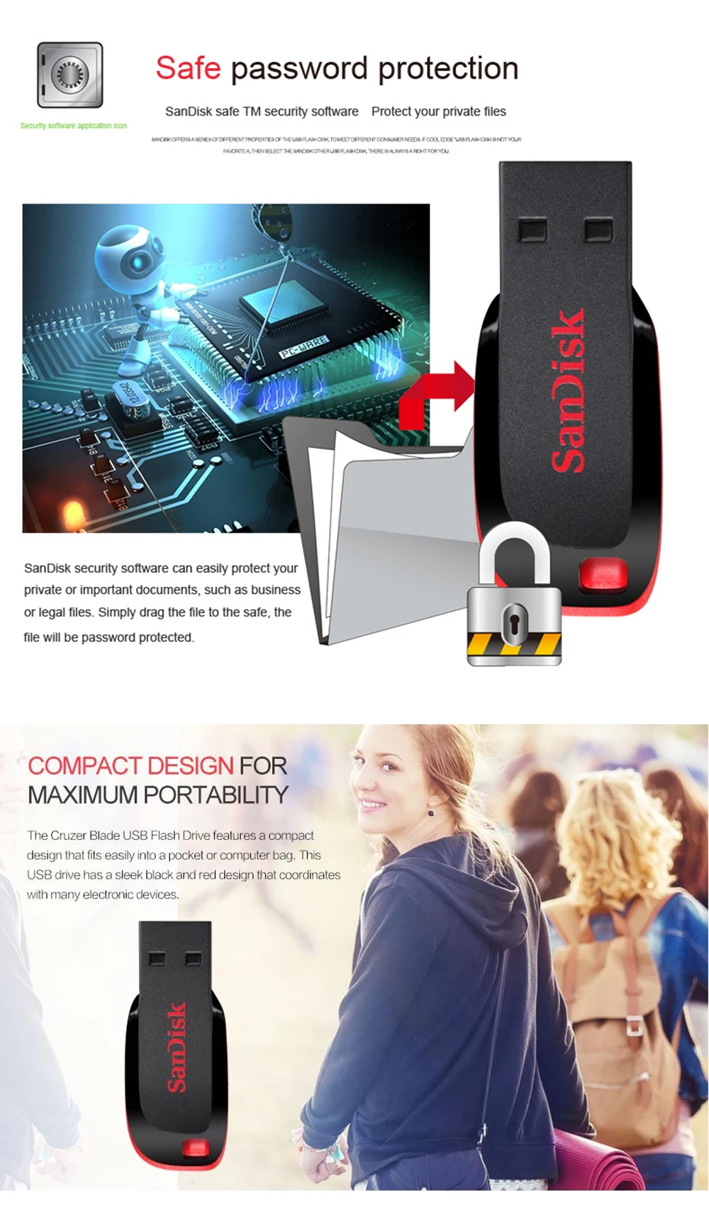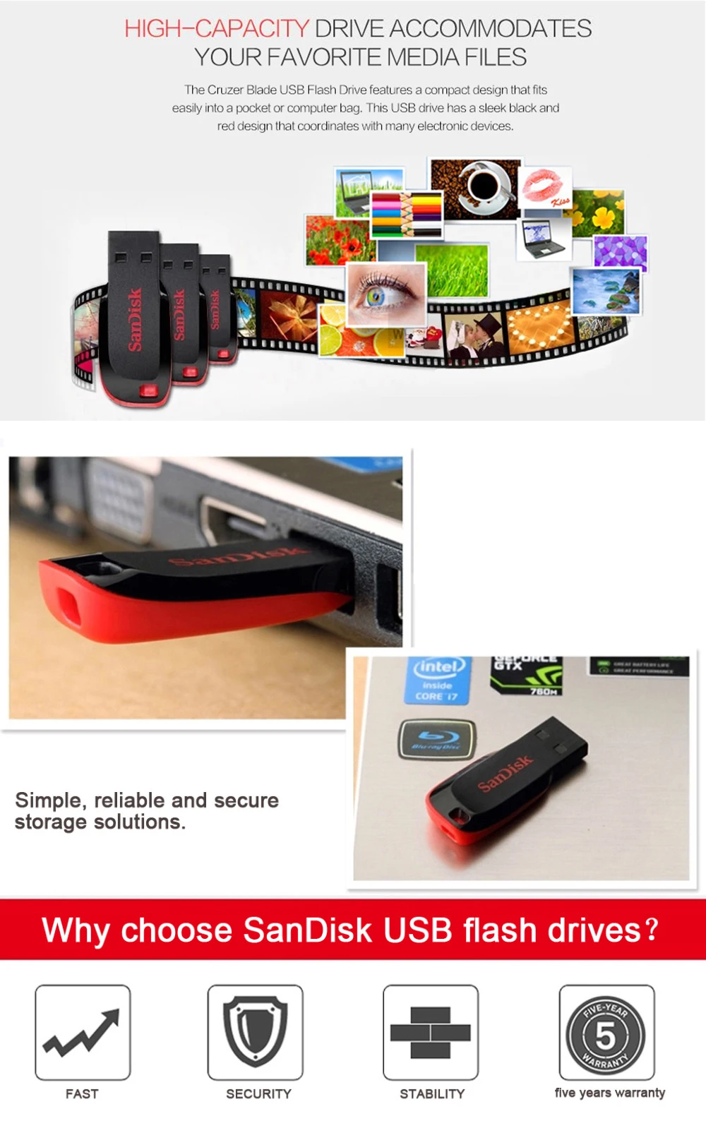 100% Оригинальный USB флеш-накопитель SanDisk 128 ГБ USB 2,0, карта памяти 32 ГБ, 64 ГБ, 16 ГБ, USB-диск, флеш-накопитель CZ50, карта памяти, флешка