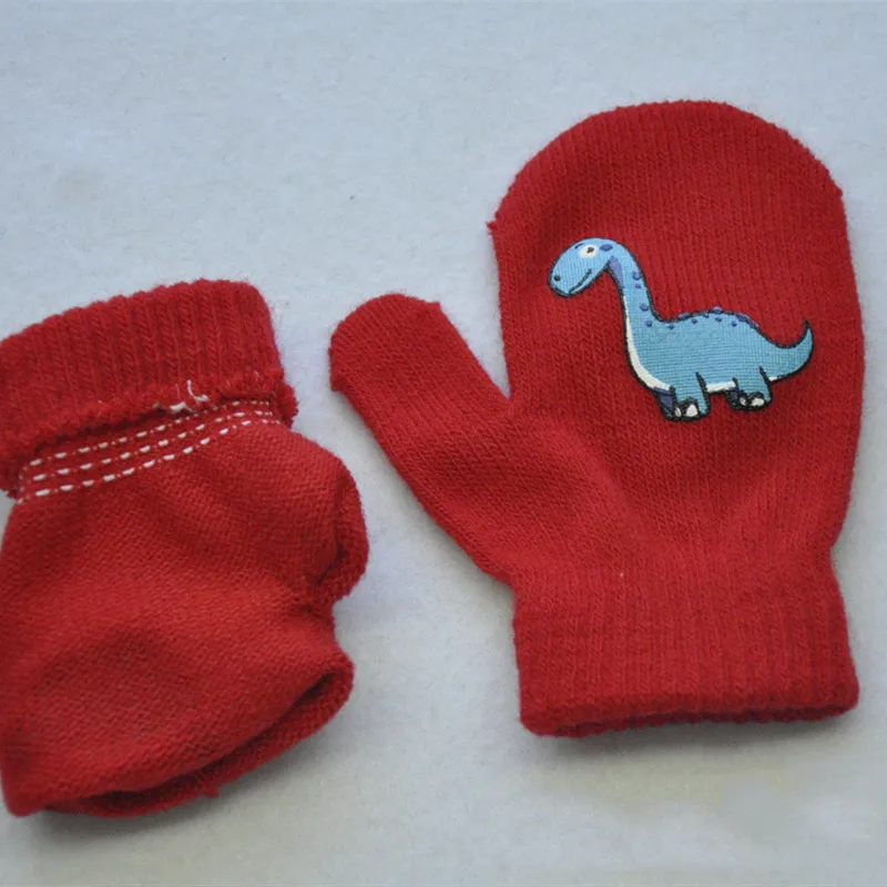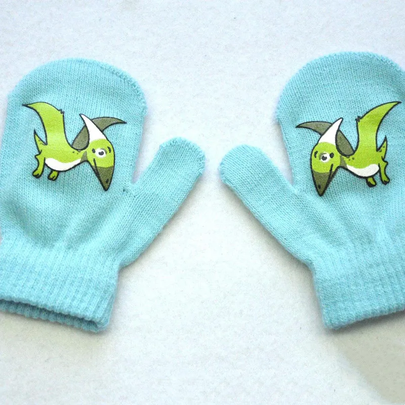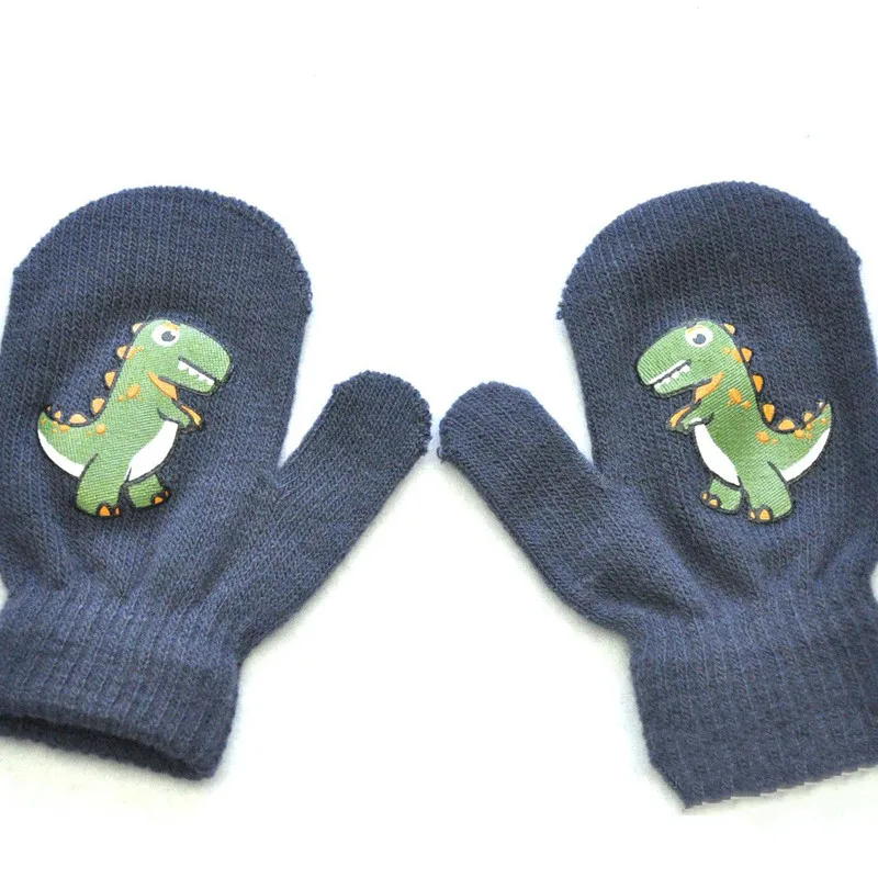 Детские теплые перчатки с мультипликационным динозавром, зимние перчатки для детей, детские перчатки с пальцами, теплые детские варежки для улицы