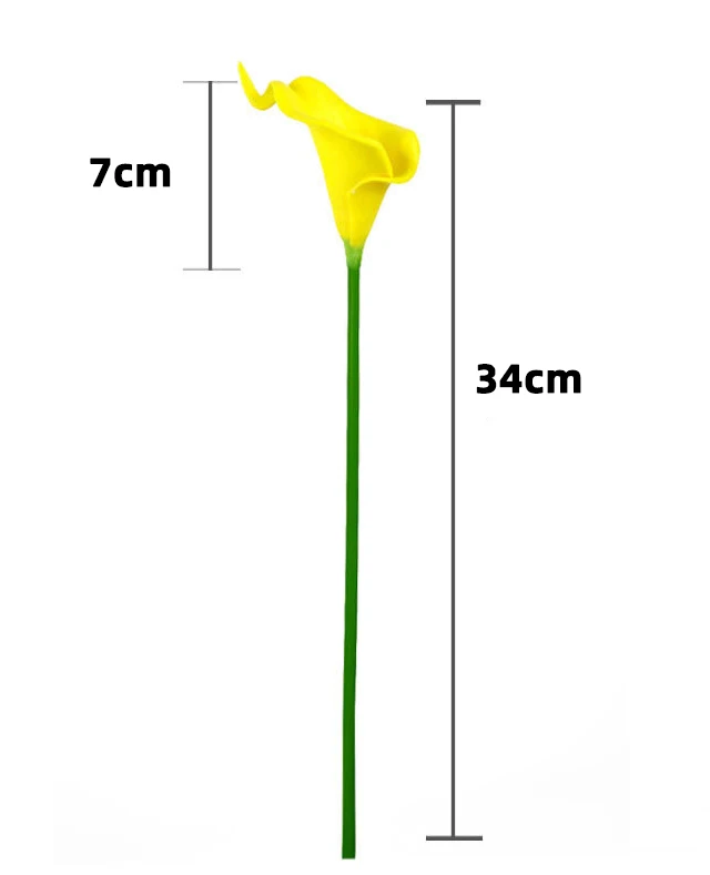 Наименование товара: мини-Калла ЛилияРазмер: Общая длина около 34 см; Высота цветка около 5x7 см;Качество материала: Цветок Из искусственной резины + пластиковый цветочный столбРазмер измеряется вручную, возможна погрешность в 1-3 смИз-за угла съемки и проблем с отображением цвет может иметь хроматическую аберрацию, спасибо за понимание