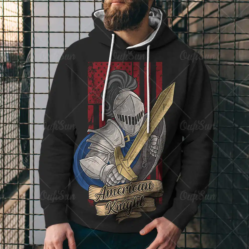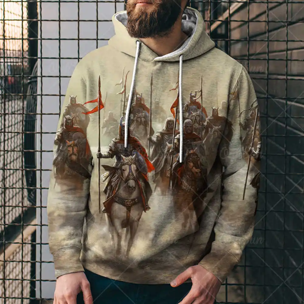 Мужские толстовки, весенне-осенние трендовые мужские толстовки с 3D принтом рыцаря-крестовицы, дышащая толстовка большого размера, мужские толстовки, Топ