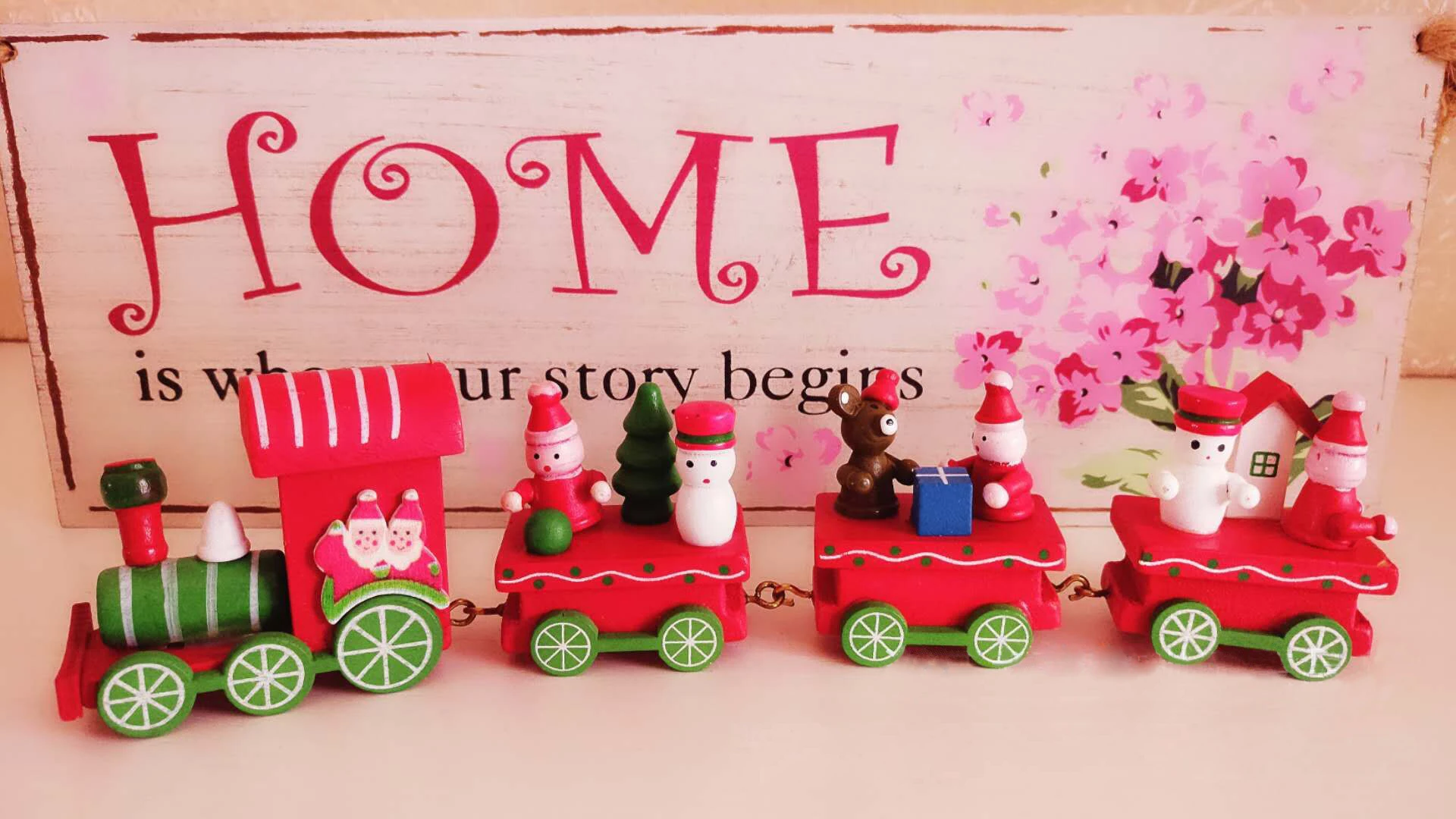 Рождественский деревянный поезд, Рождественское украшение для дома,...