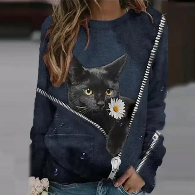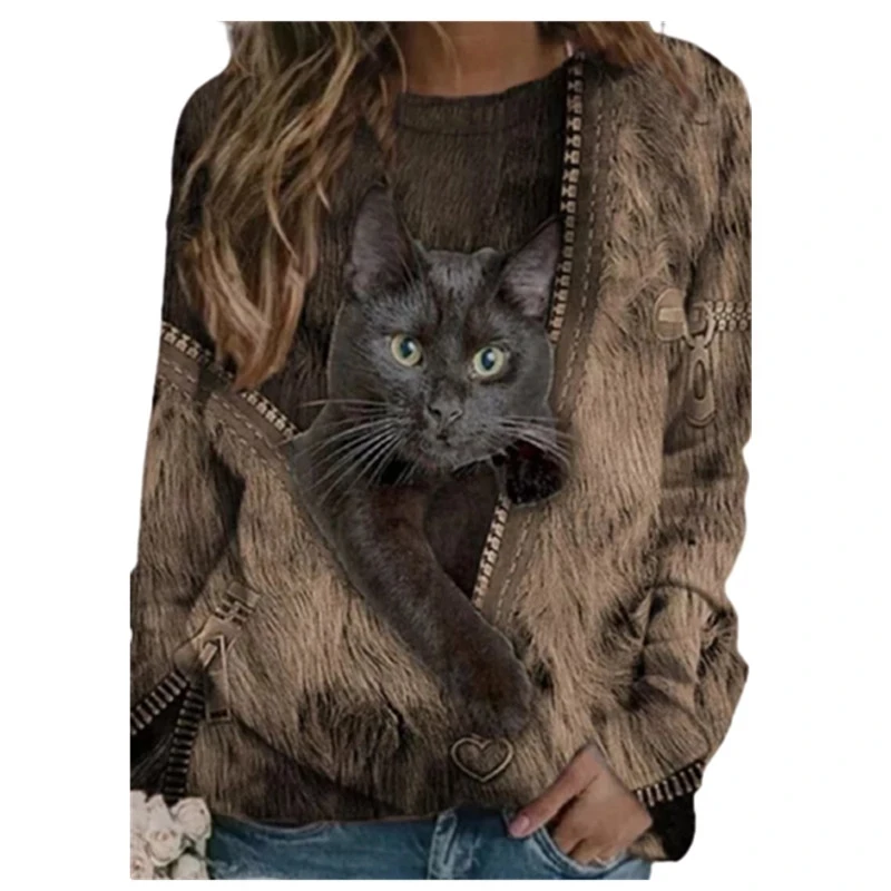 Женская свободная футболка с длинным рукавом и круглым вырезом