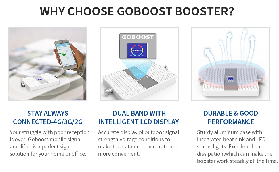 GOBOOST 2G 3G усилитель сигнала мобильный телефон сотовый усилитель 4G LTE GSM 850 DCS 900 1800 2100 1900 1700 3G 2 диапазона сотовый ретранслятор