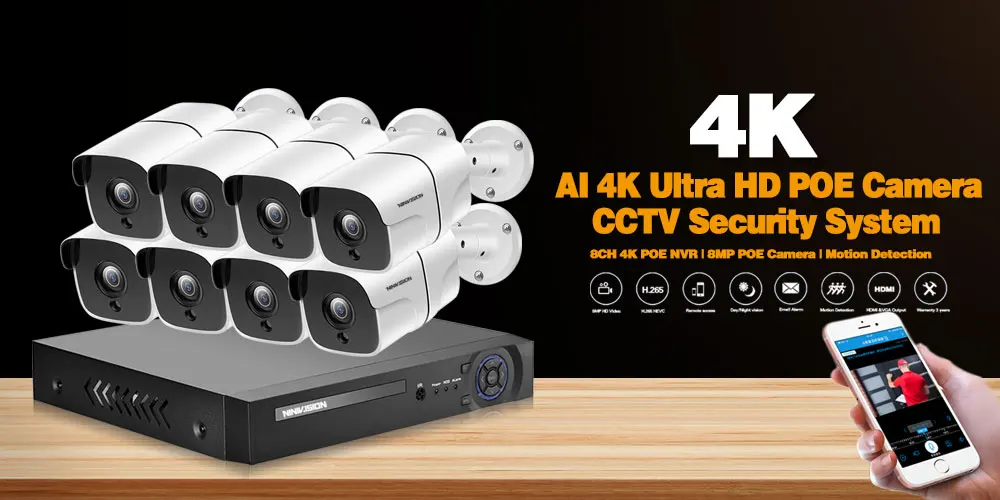 1. Все наши NVR и камеры являются реальными H.265 4K 8MP, NVR может поддерживать 8MP и 4K max, вы можете подключить 720p,1080p,3mp,4mp ,5mp, камеры 8mp & 4k с нашим POE NVR;2. Наш NVR поддерживает распознавание лиц, умное воспроизведение лица, обеспечивает ультра высокое разрешение видео наблюдения, обеспечивая максимальную детализацию и четкость в наличии;3. Наш NVR и камеры поддерживают расширенное H.265 Сжатие видео, питание через Ethernet, подключи и работай, прост в использовании;4. Все камеры встроены в микрофон, поддерживают аудиозапись, поддерживают режим ночного видения Ultra HD;5. Все камеры имеют металлический материал, IP66 водонепроницаемый, подходит для внутреннего и наружного использования, надежная Домашняя безопасность;6. Поддержка обнаружения движения, оповещения по электронной почте, воспроизведения видео и многоязычности;7. Поддержка Android,Iphone,Ipad,PC,VMS,P2P view;8. Удаленный доступ в любом месте, в любое время;9. Подходит для всех видов мест применения;