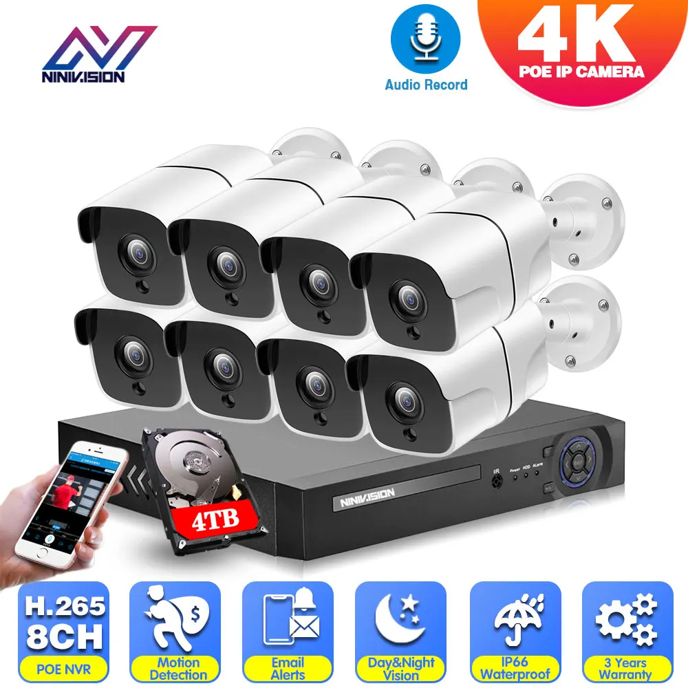 4K Ultra HD 8MP POE NVR комплект уличная CCTV запись системы безопасности IP камера для наружного домашнего видеонаблюдения камера набор