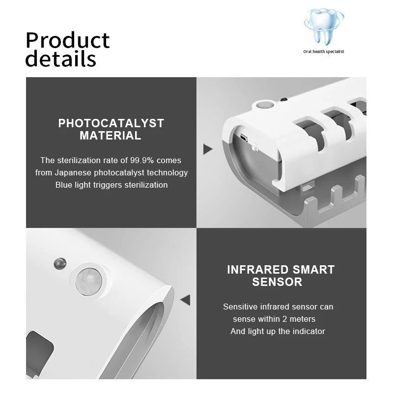 USB-стерилизатор зубной щетки, с держателем для зубных щеток, двухслойный стерилизатор зубной пасты, автоматический диспенсер, настенные инструменты для ванной комнаты