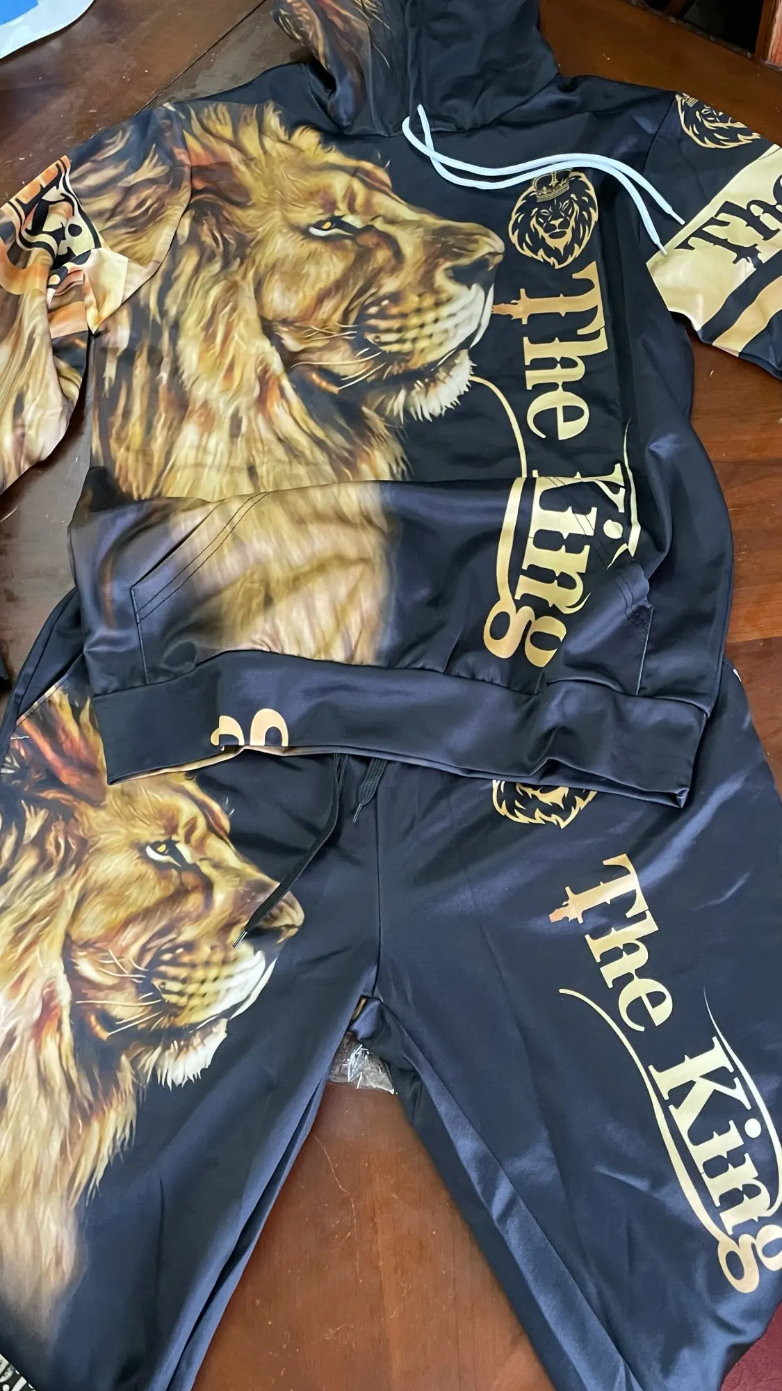 Мужской комплект с толстовкой с капюшоном и принтом тигра, мужской спортивный костюм с Львом, пуловер, куртка, брюки, спортивный костюм для осени и зимы