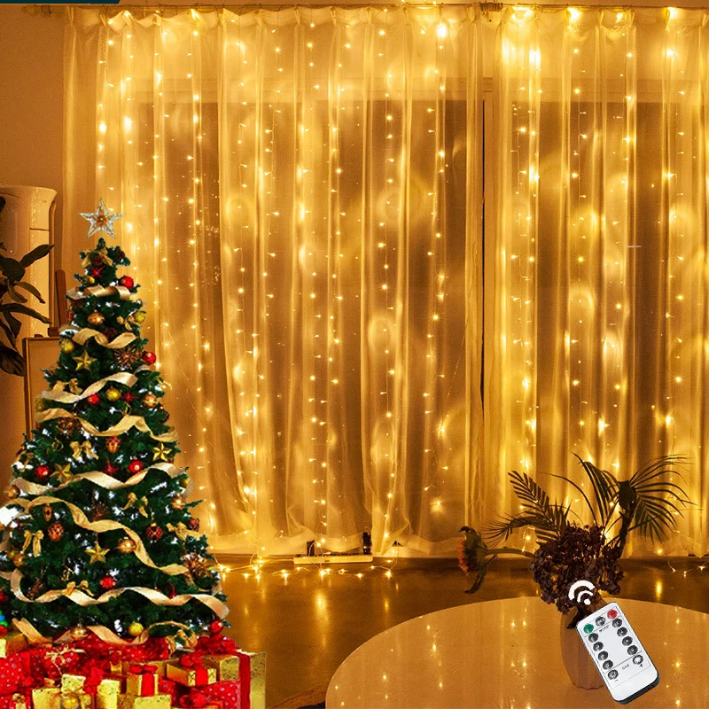 Комнатная гирлянда, занавески, рождественское и новогоднее освещени...