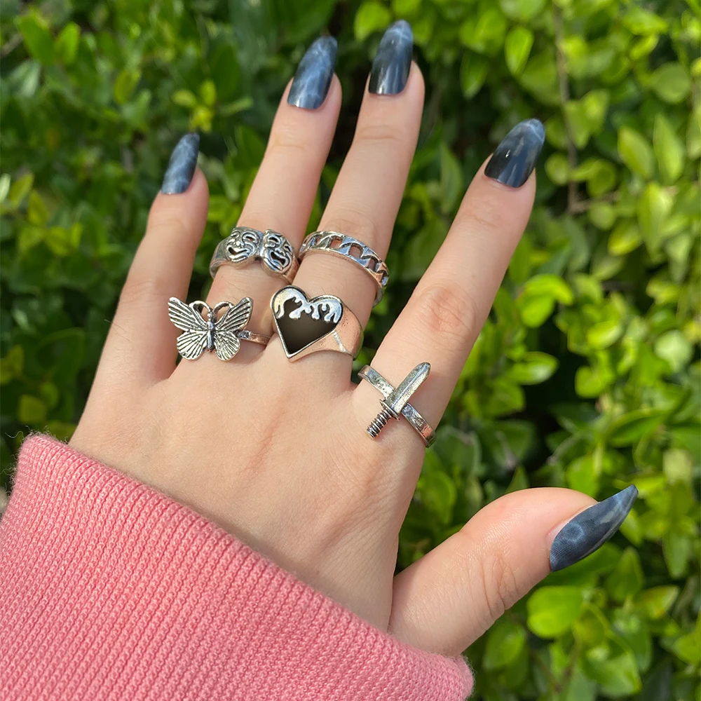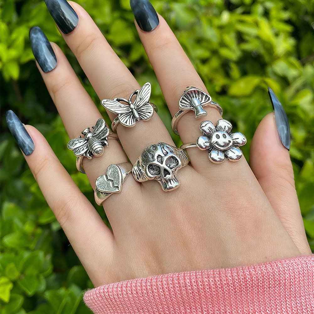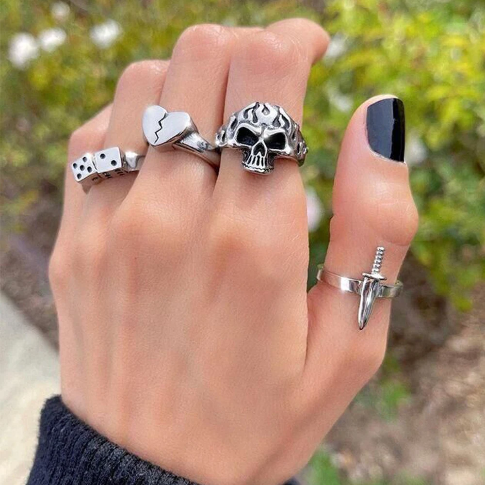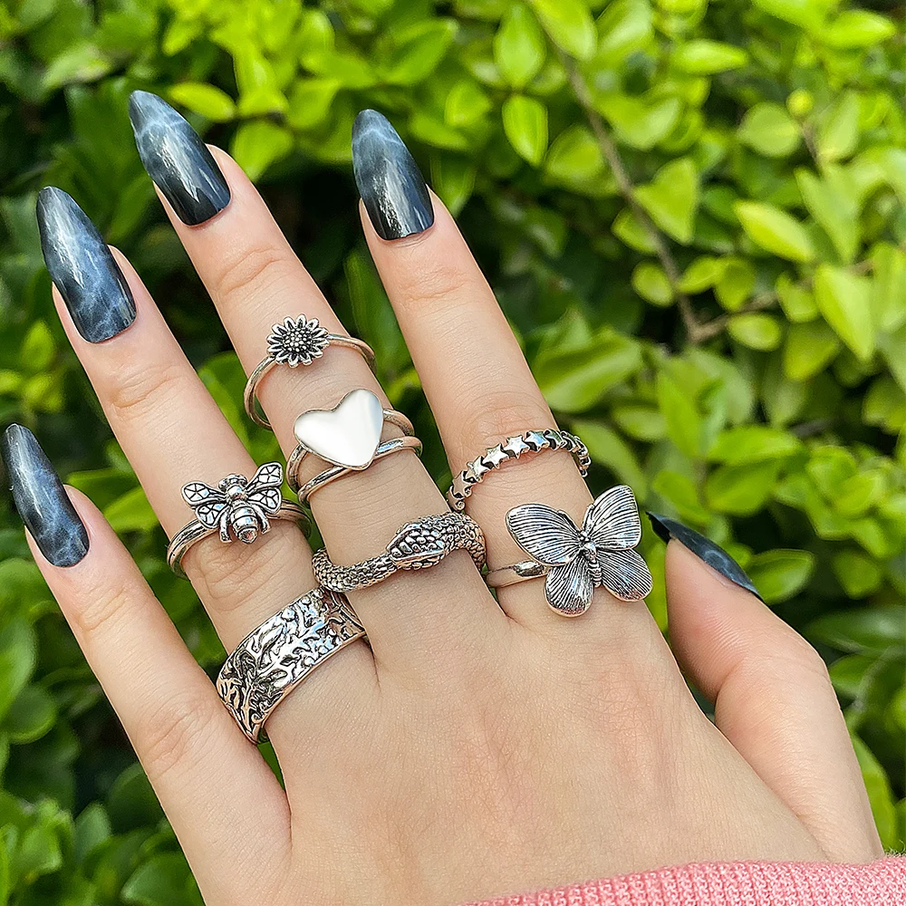 Женский комплект колец в стиле панк и готика, винтажная Посеребренн...