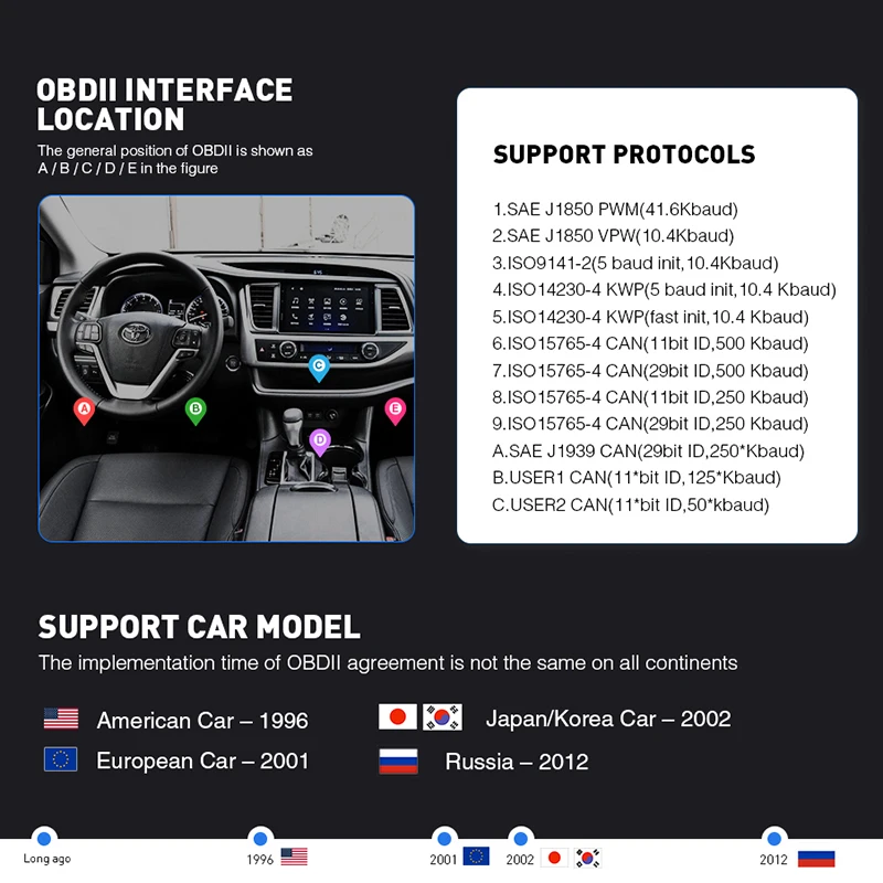 Список моделей автомобилей:1. Американская автомобильная Поддержка автомобиля после 1998 года2. Европейская Автомобильная Поддержка автомобиля после 2000 года3. Азиатский автомобиль поддержки после 2002 года, (Япония и Корея и Китай и так далее)4. Поддержка российских автомобилей после 2012 года (ВАЗ/УАЗ/газ)