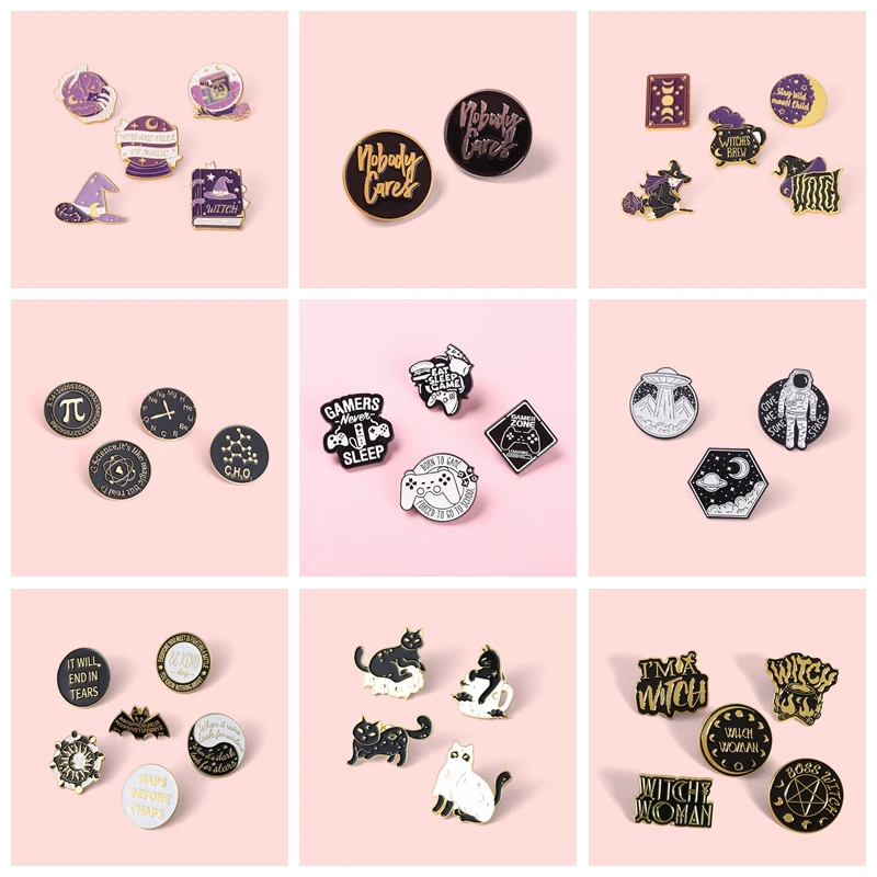 Эмалированные заколки Witch Magic World, милые значки на лацкан для...