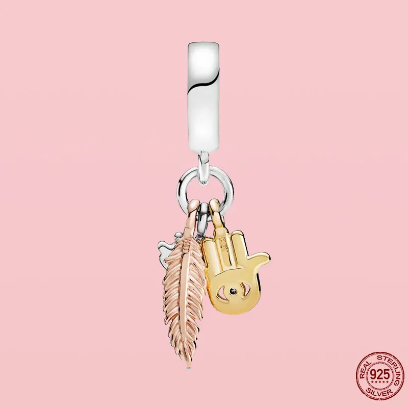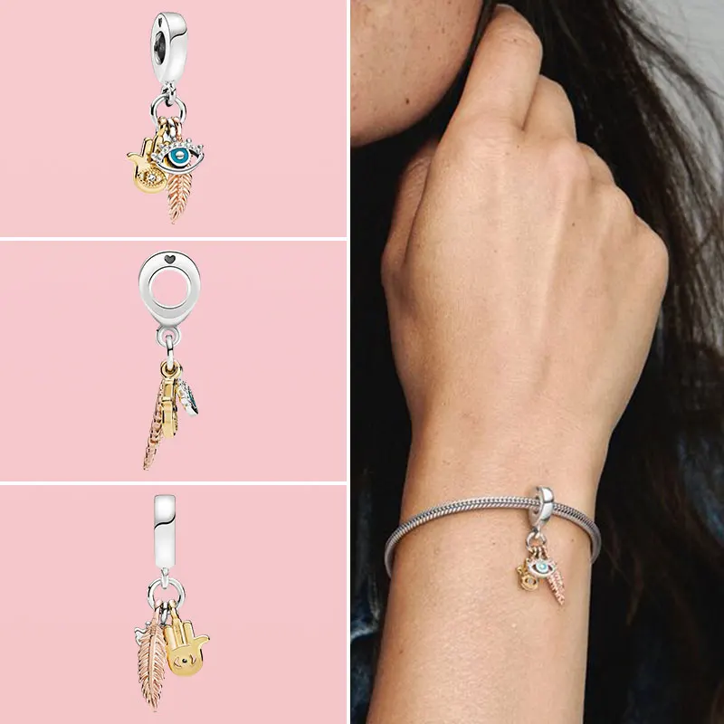 Новое поступление, подвеска из стерлингового серебра 925 пробы, подвеска Hamsa с изображением всех видов глаз и перьев, подвеска-Шарм, подходящая к оригинальному браслету Pandora, ювелирные изделия