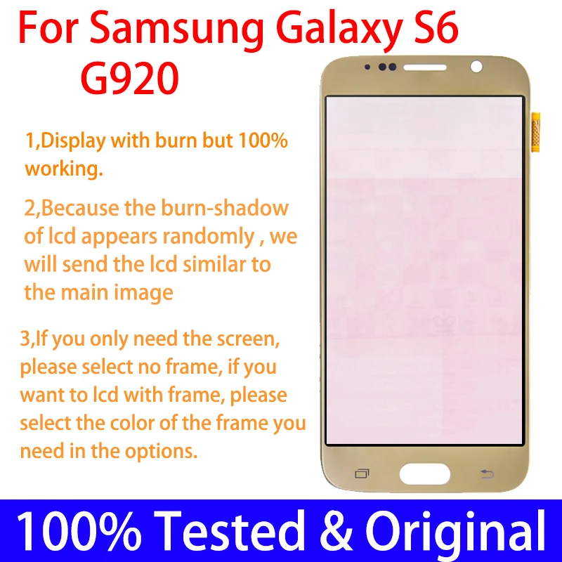 Оригинальный 100% протестированный ЖК AMOLED дисплей 5,1 ''для Samsung Galaxy S6 G920 G920F с рамкой дисплей сенсорный экран Запасные части