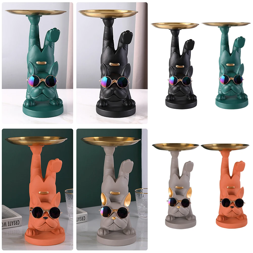 Статуя французского бульдога из смолы, поднос для хранения мелочей ...