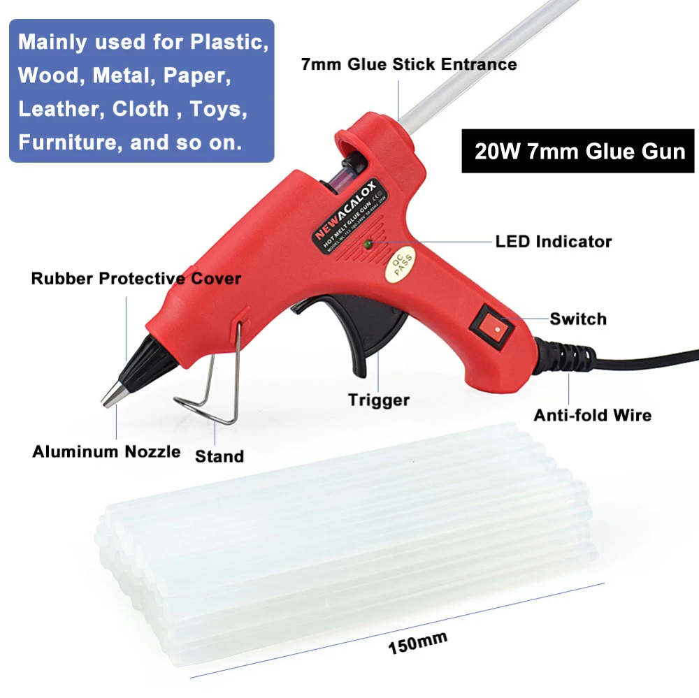 Характеристики клеевого пистолета 7 мм:Цвет: черный/красный/желтый