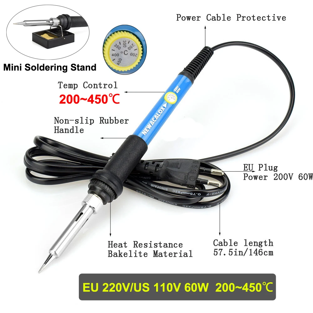 2. Нагревается быстро: Паяльник имеет специальный термостат для контроля температуры, нагревается быстро. Регулируемая температура с диапазоном термостата 200 ~ 450 градусов по Цельсию.