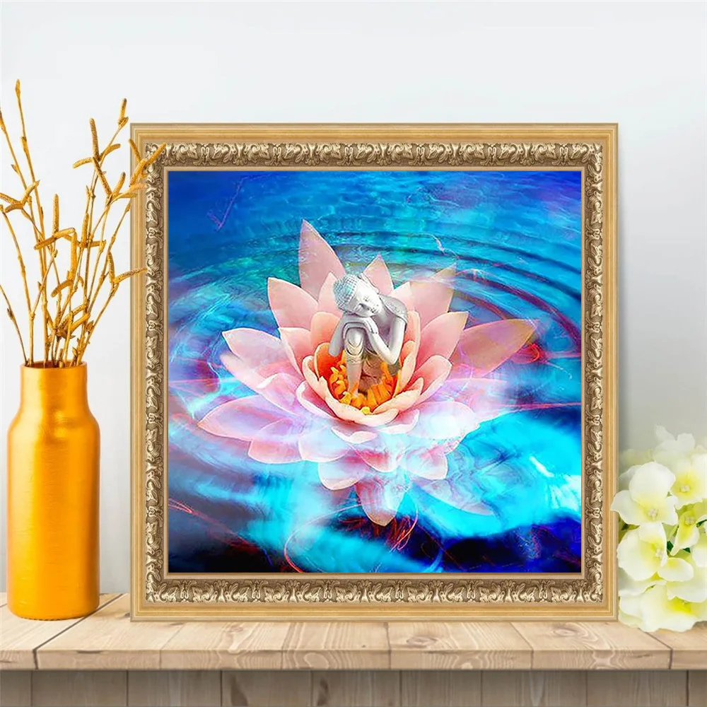 Набор для алмазной живописи HUACAN, Настенная Наклейка с Буддой, лотосом, вышивка стразами, мозаика с цветами, декор для комнаты