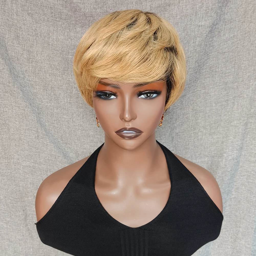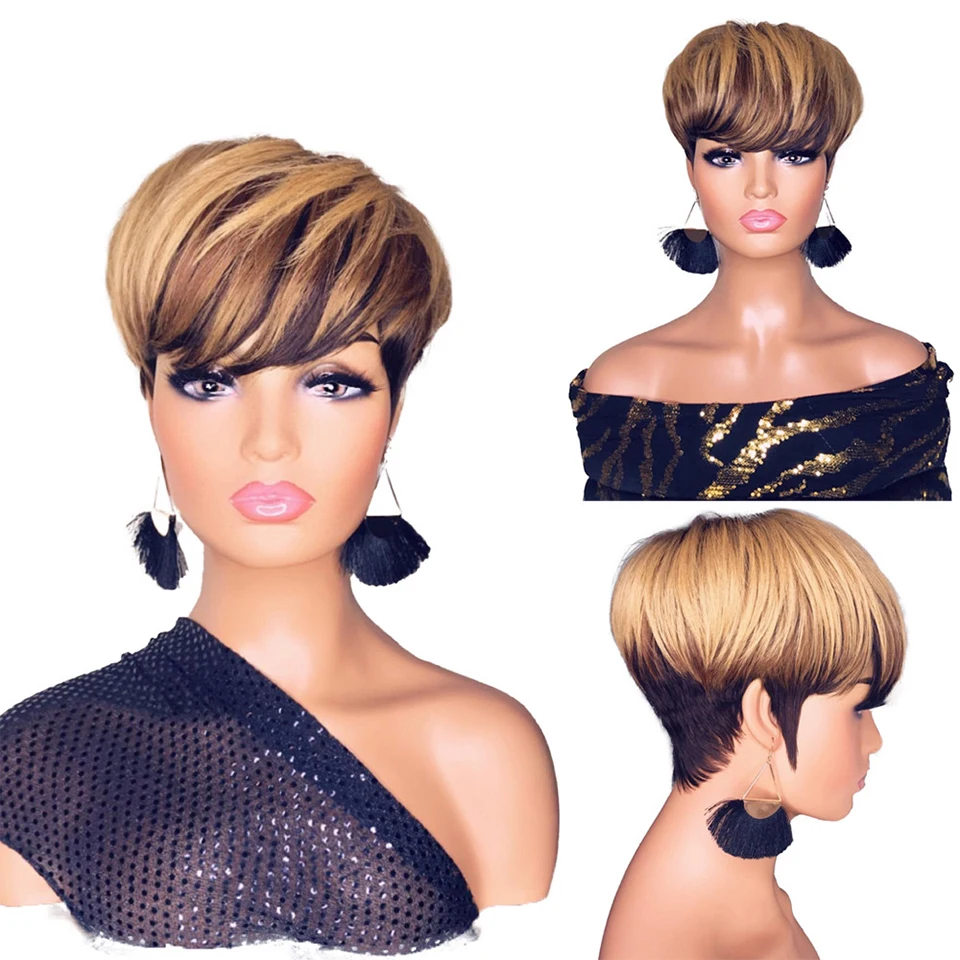 Короткий прямой парик из натуральных волос с челкой для чернокожих женщин, парик из бразильских человеческих волос, дешево, до 50 $, оптовая продажа