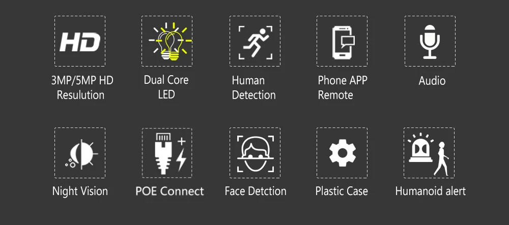 Обнаружение движения и оповещение по электронной почте и сигнал тревогиКогда кто-то врезается в область съемки, камера издает сигнал тревоги, а сообщения тревоги будут подталкиваться к вашему телефону.4 шт. двухъядерный светодиодный s, поддержка IR светодиодный и теплый светодиодный