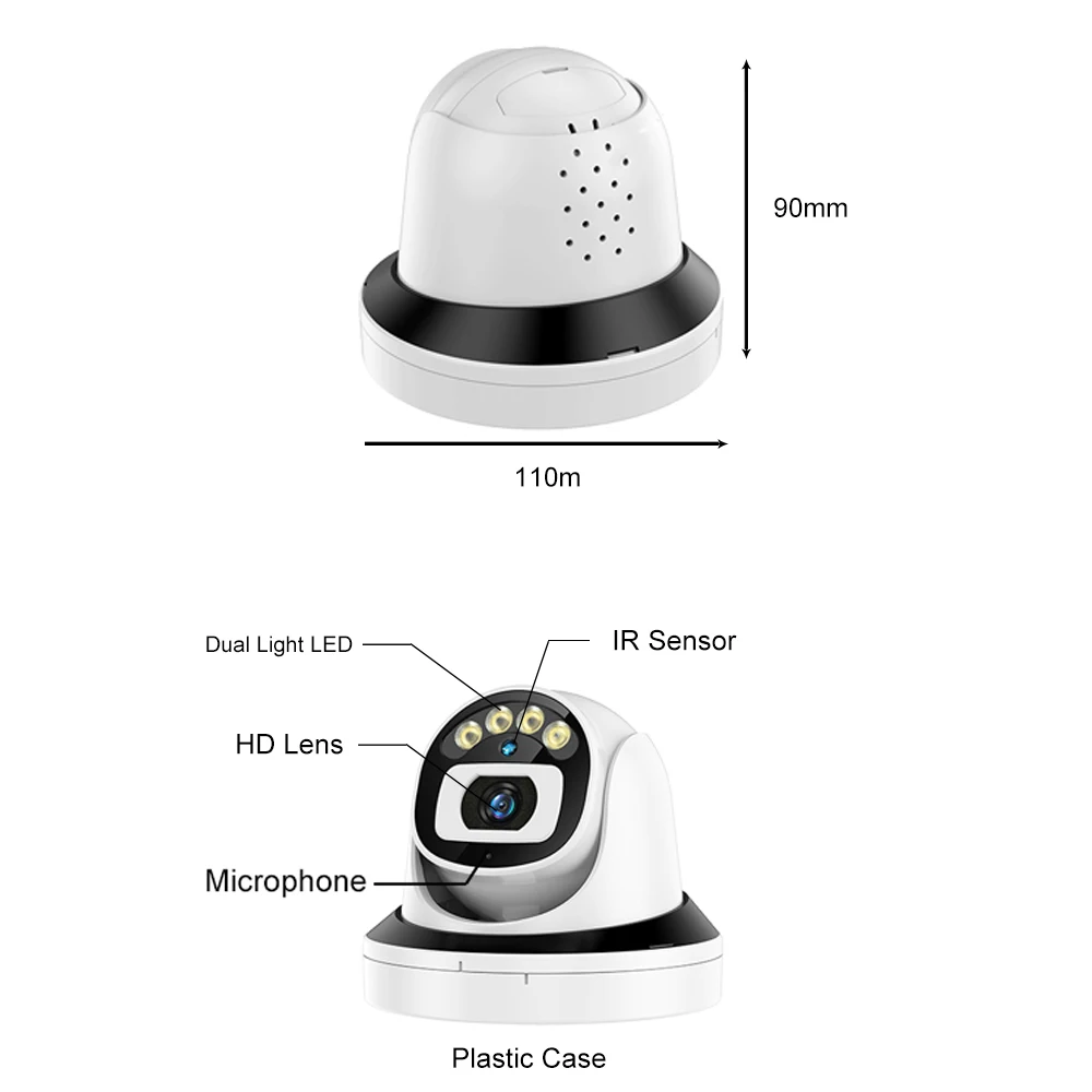 Обнаружение движения и оповещение по электронной почте и сигнал тревогиКогда кто-то врезается в область съемки, камера издает сигнал тревоги, а сообщения тревоги будут подталкиваться к вашему телефону.4 шт. двухъядерный светодиодный s, поддержка IR светодиодный и теплый светодиодный