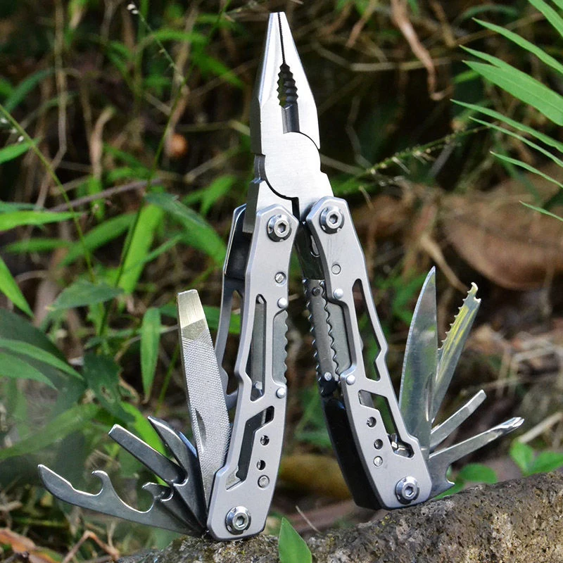 1. Плоскогубцы (плоскогубцы с иголками, плоскогубцы с круглыми трубками, режущие плоскогубцы) 2. Нож 3. Крестовая отвертка 4. Маленькая шлицевая отвертка 5. Нож для рыбьей чешуи 6. Деташер 7. Двухсторонняя пилка 8. Большая шлицевая отвертка 9. Скребок 10. Средняя шлицевая отвертка 11. Консервный нож 12. Открывалка для бутылок