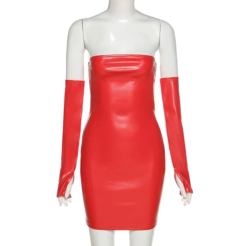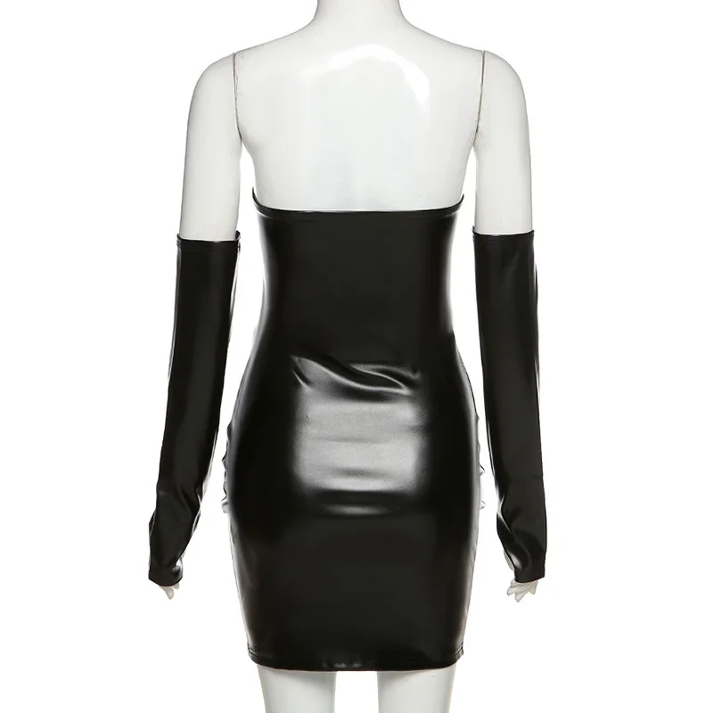 Соблазнительное платье из искусственной кожи с перчатками, вечерние...