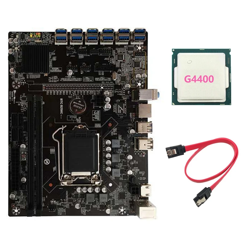 Материнская плата B250C для майнинга BTC с процессором G4400 + кабелем SATA LGA1151 12xpcie в разъем для графической карты USB3.0 поддерживает DDR4 RAM