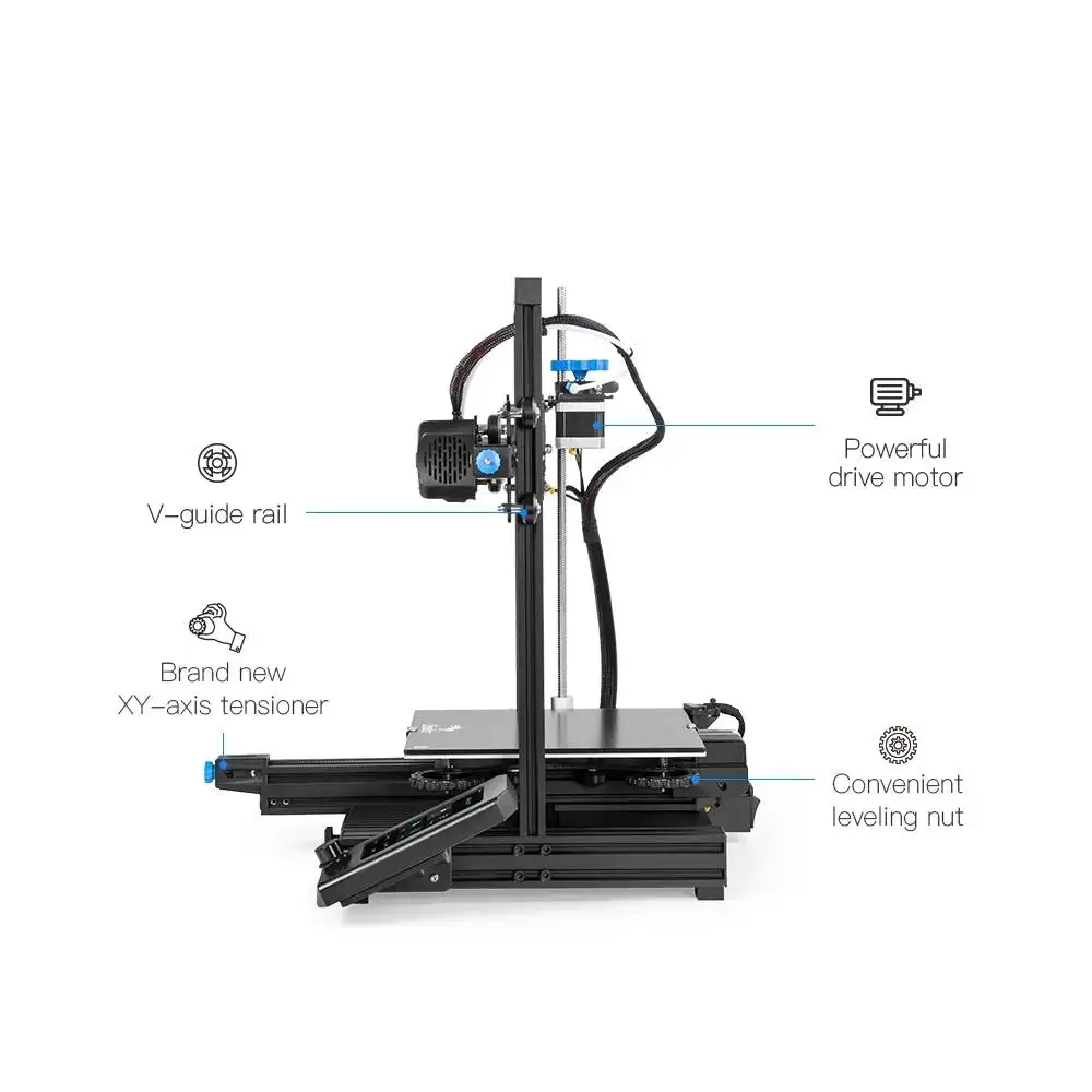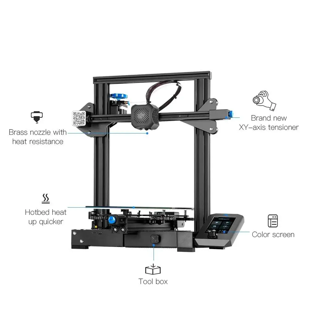 Это обеспечивает пользователям возможность использования вне коробки и беззвучные обновления (более тихие 3D-принтеры).Новый экран с обновленным простым в использовании интерфейсом.Новый корпус нагревательного элемента.Умный датчик накаливания и повторная печать.Легкая функция подачи нити.X и Y-Axis натяжение ремня: быстрая и быстрая регулировка. И лучше улучшить точность размеров.Y-Axis - 4040 Экструзия алюминия: ось Y была заменена на 4040 экструзии, так же, как Ender 3 Pro.Это обеспечивает большую стабильность оси Y по сравнению с первоначальным стандартом Creality Ender 3.Насадка и набор инструментов, удобные и аккуратные.