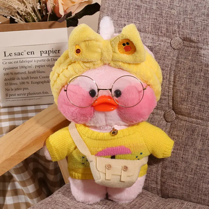 30 см кофейная утка плюшевая сетка Красная пудра с гиалуроновой кислотой утка плюшевый мишка игрушка одежда шляпа сумка набор аксессуаров