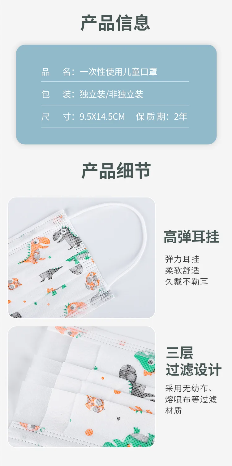 Информация Материал: Нетканая ткань + расплавленная ткань Размеры: 14,5*9,5 см Предназначено для: детей (От 3 до 13 лет) Упаковка: 50 шт./пакет мешок из полиуретана с открытыми порами Толщина: три слоя Стиль маски: Тип висячего уха Примечание Размеры изделия измеряются вручную, возможна погрешность в 1-3 см