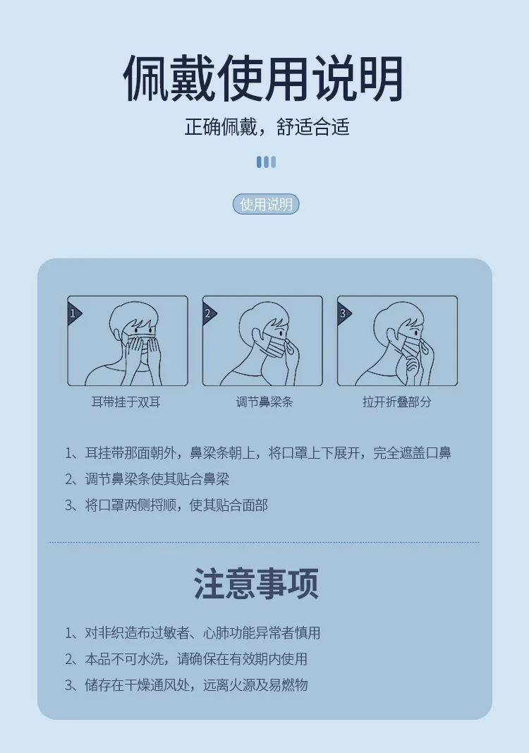 Маска для лица одноразовая из нетканого материала с 3-слойным фильтром