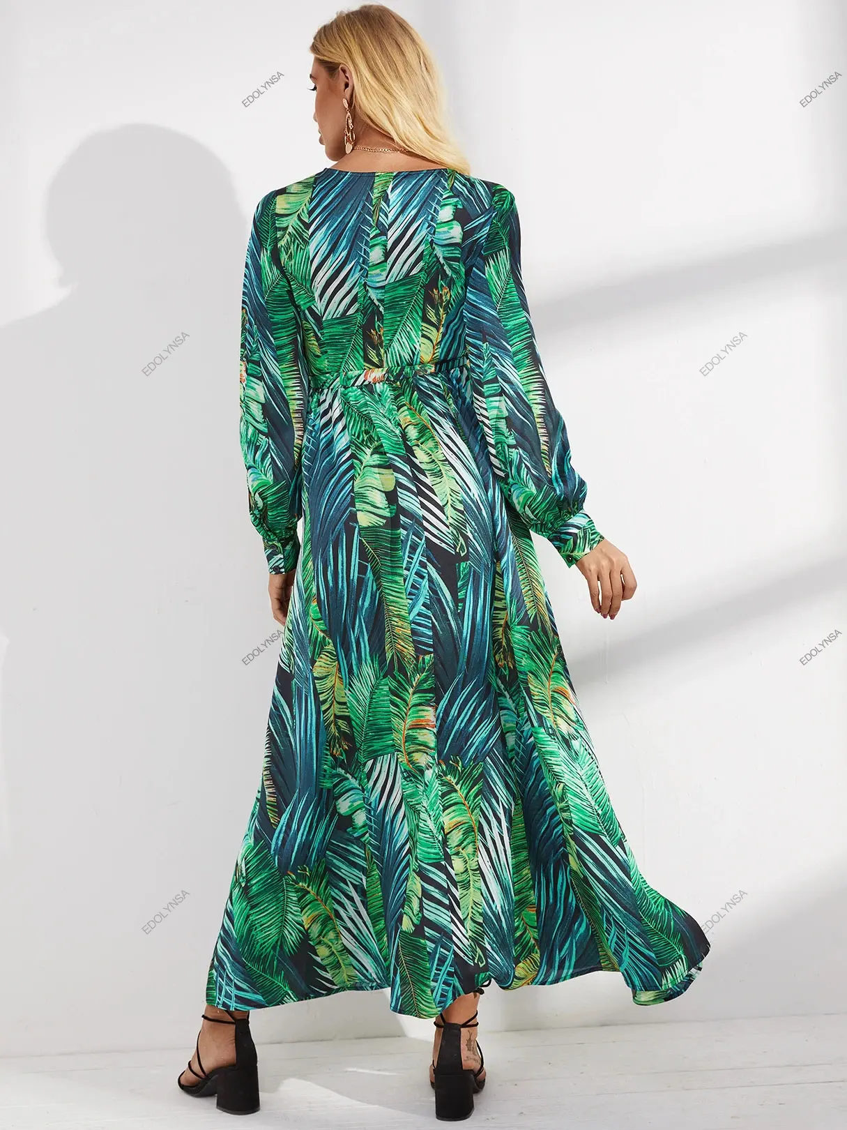 Женское длинное платье с v-образным вырезом, длинным рукавом и боль...