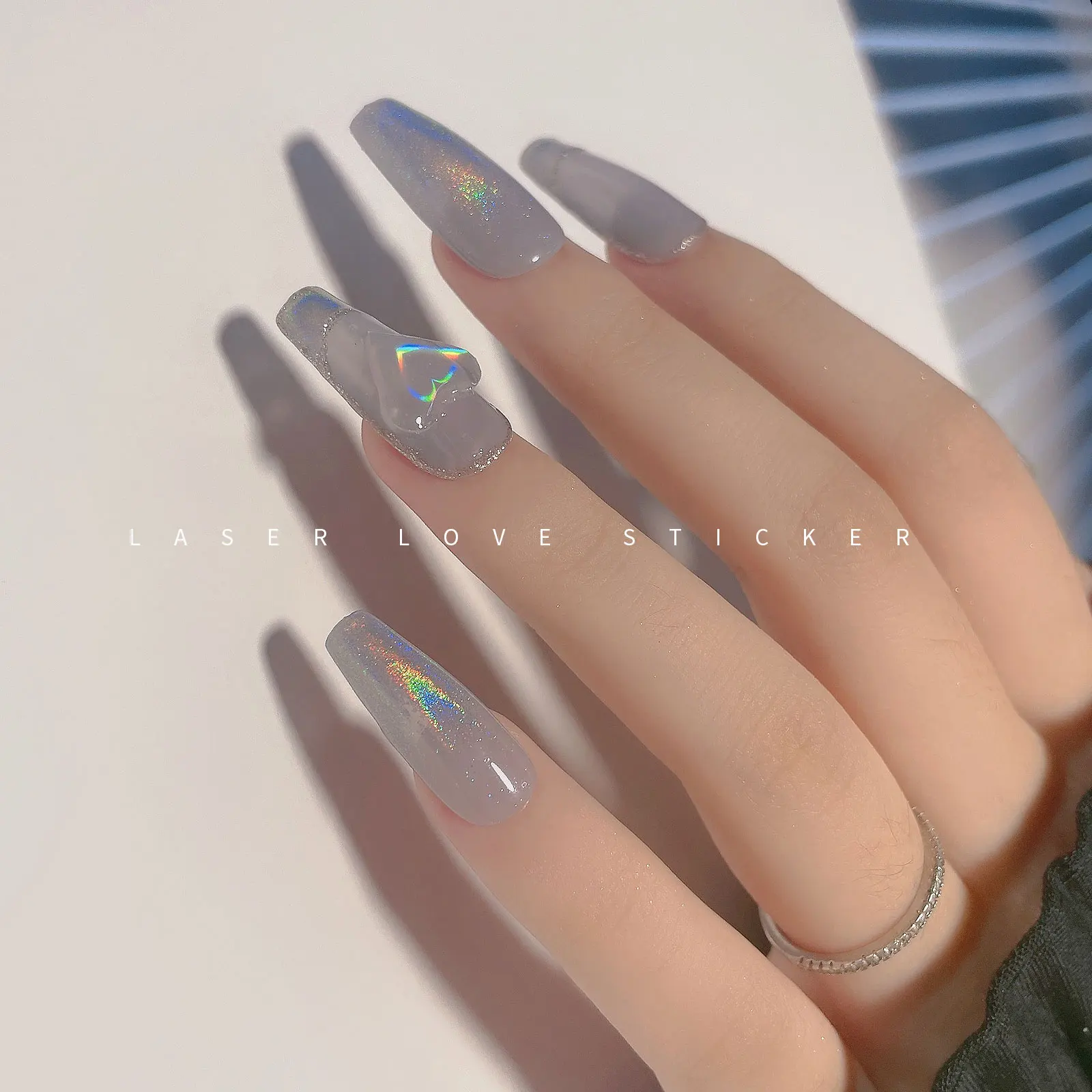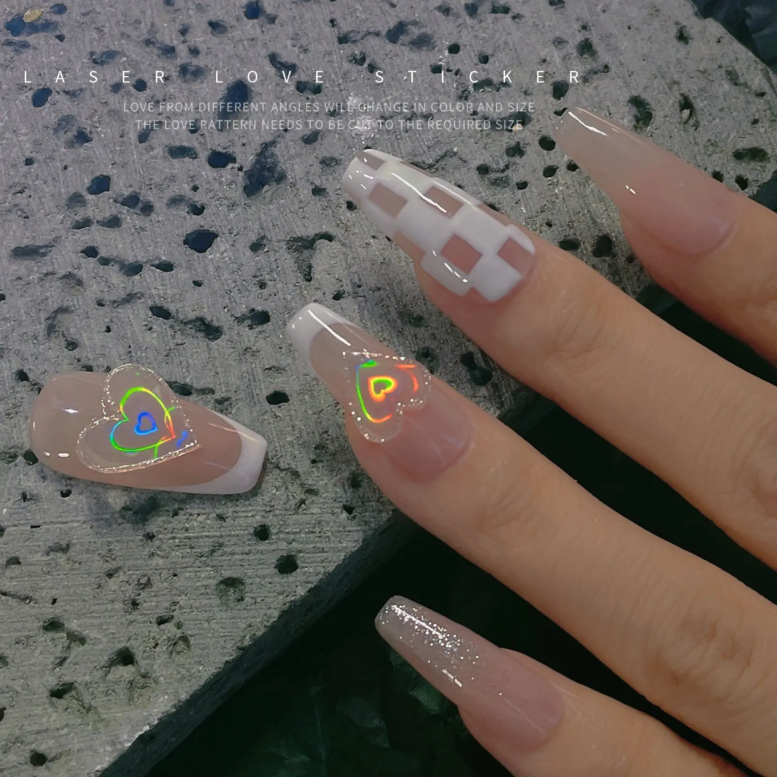 3D наклейки для дизайна ногтей с лазером в форме сердца, наклейки д...