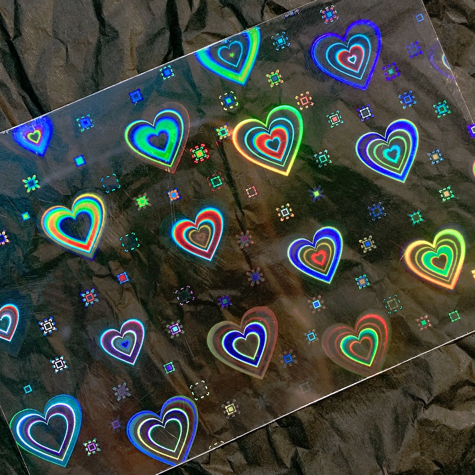 1 лист Аврора, лазер, сердце, наклейка для ногтей, 3D динамические ...