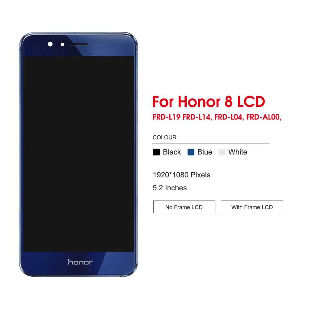 5,2 "Оригинальный ЖК-дисплей Huawei Honor 8, сенсорный экран, дигитайзер в сборе для Honor8 FRD-L19,L14,L09,L02, ЖК-экран с рамкой