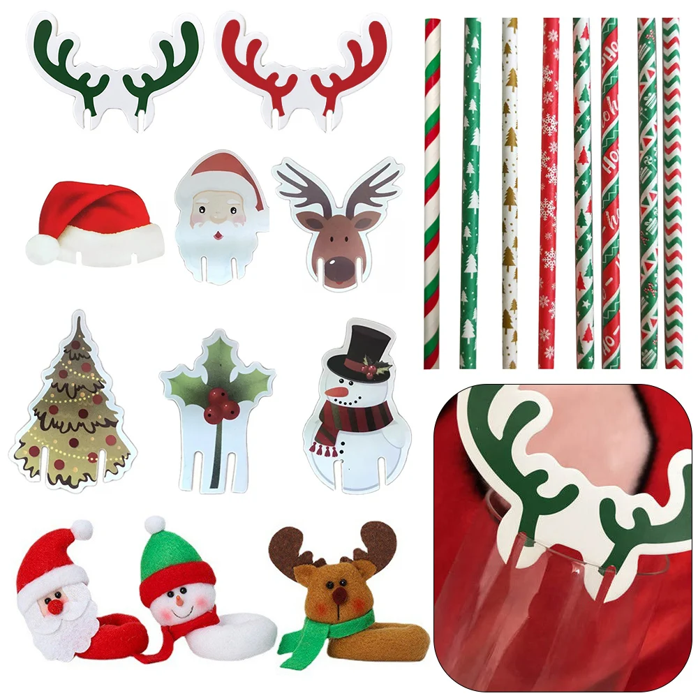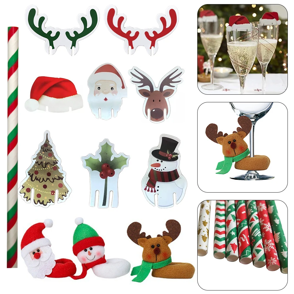 2. Соломинки и набор карт для Винных Бокалов разработаны с различными рождественскими элементами, которые могут значительно повысить праздничную атмосферу на рождественских вечеринках.