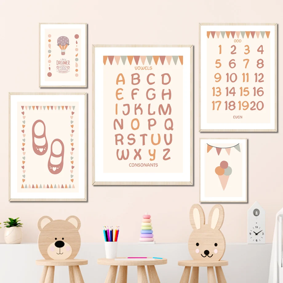Мультяшные животные Алфавит цифры скандинавские плакаты и принты об...