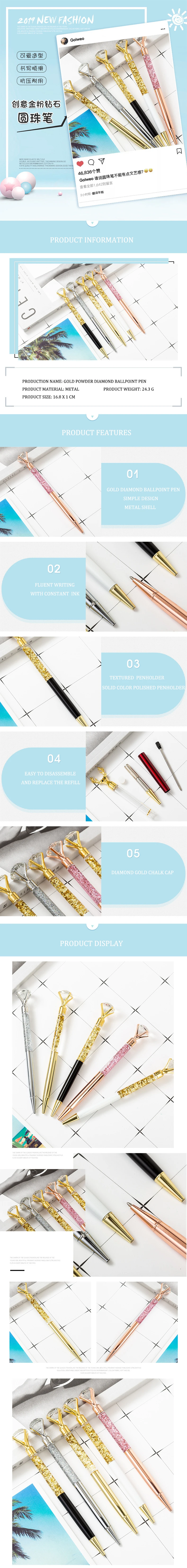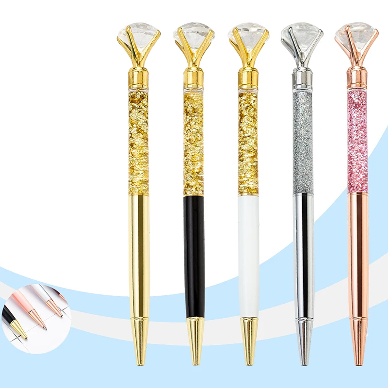 Креативная шариковая ручка с золотым порошком и бриллиантами, метал...