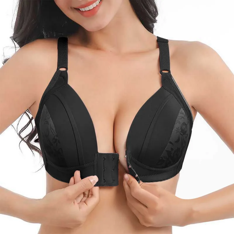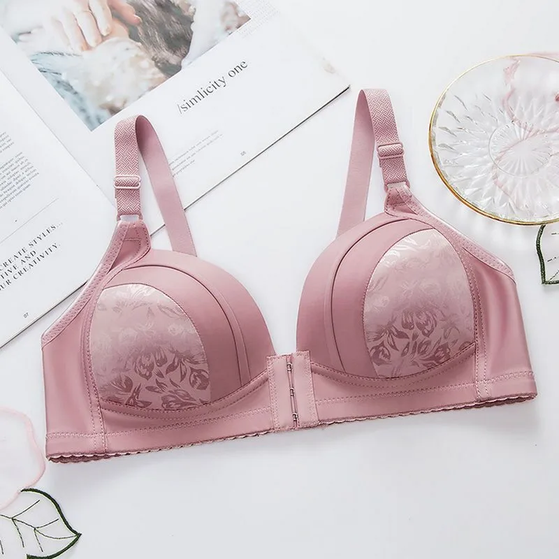 Женское нижнее белье размера плюс, тонкий цветочный бюстгальтер для женщин, бюстгальтер пуш-ап с застежкой спереди, бюстгальтер без косточек, бесшовный бюстгальтер