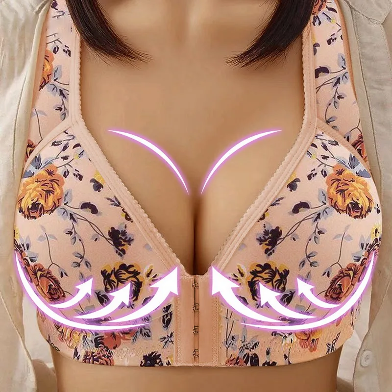 Женский цветочный бюстгальтер пуш-ап без косточек с застежкой спереди