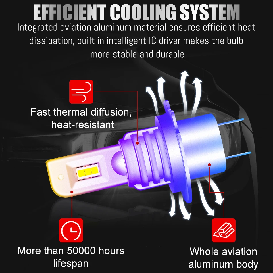 Безвентилясветильник мини-фсветильник H7, 6000K, 50 Вт, H4, H1, H8,...