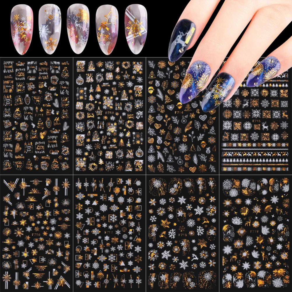 Рождественская наклейка для ногтей 3D зимние снежинки Лось лазерные наклейки золотые английские буквы DIY слайдер наклейки для маникюра Нейл-арт