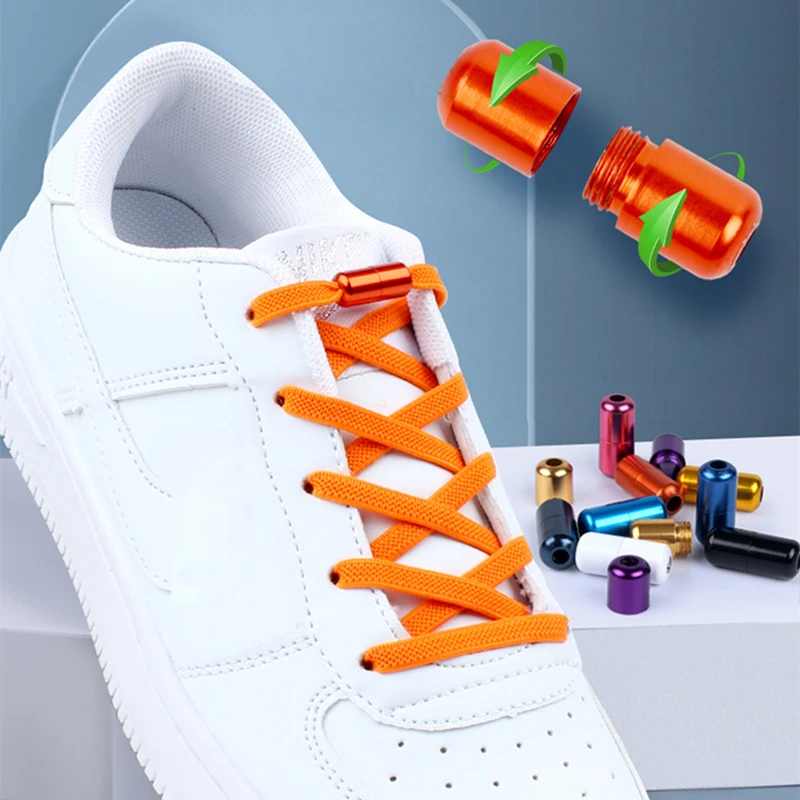 Плоские эластичные шнурки для кроссовок унисекс, металлические заст...