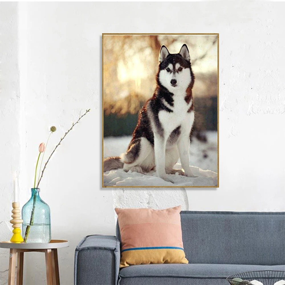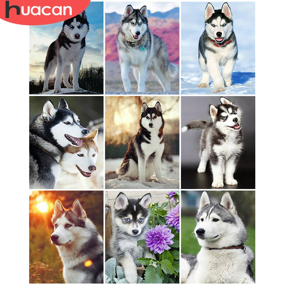 HUACAN Раскраска по номерам собака Животные комплекты, украшение для дома фото картина по номерам зимние ручная роспись искусство подарок 60x75cm