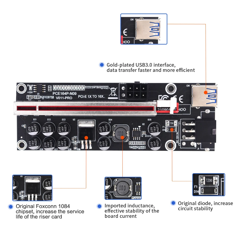 PCIE Riser VER011 pro Улучшенная супер версия для майнинга PCIE X16...