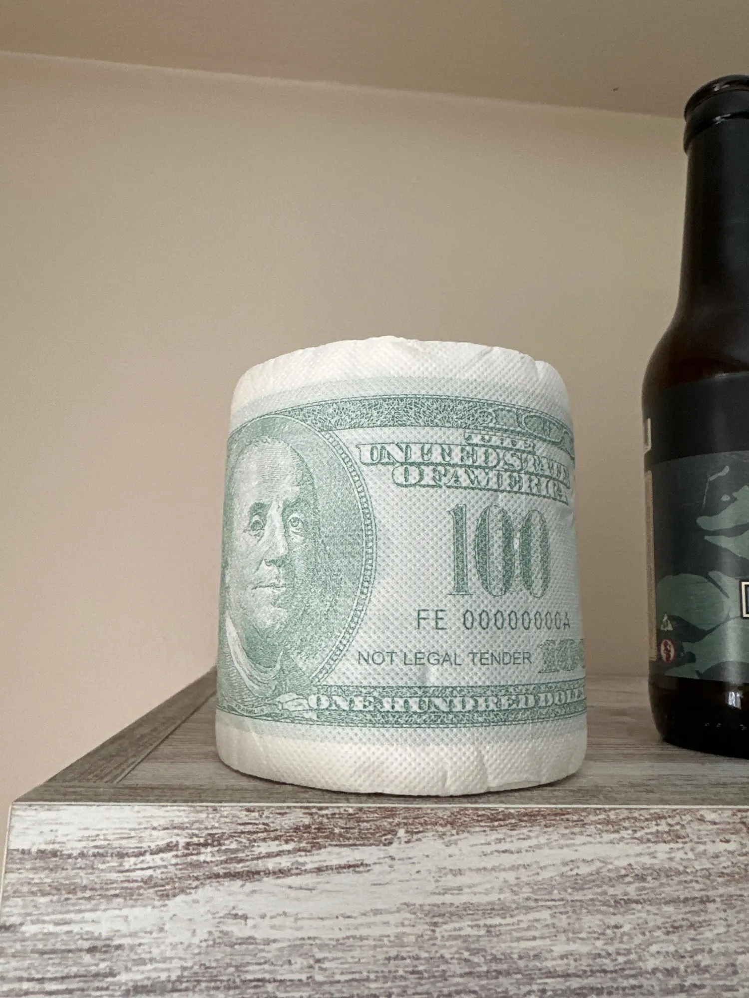 Рулон туалетной бумаги с изображением козырька, $100 долларов, бума...