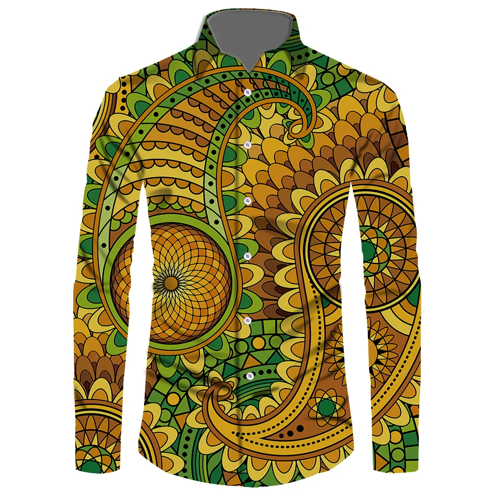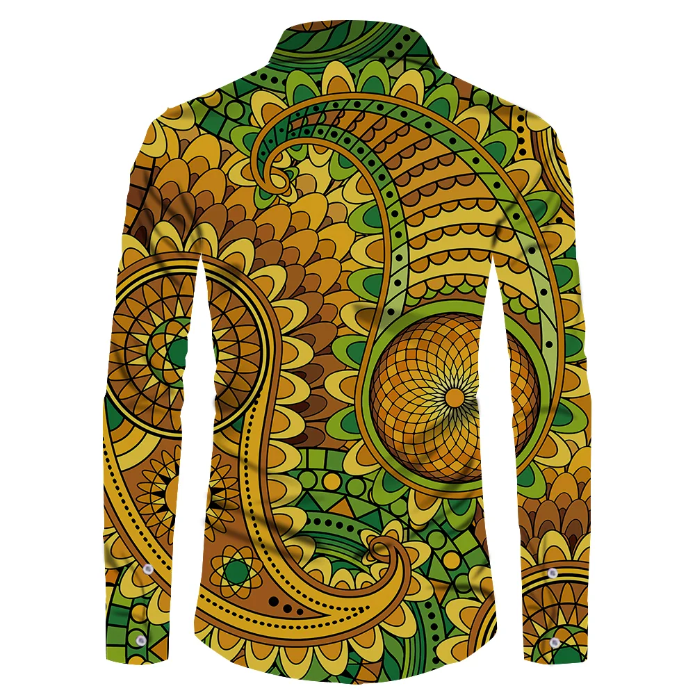 Мужская рубашка с длинным рукавом и принтом в этническом полинезийс...