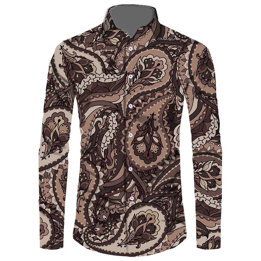 Рубашка мужская оверсайз с длинным рукавом, повседневная Бандана с ...