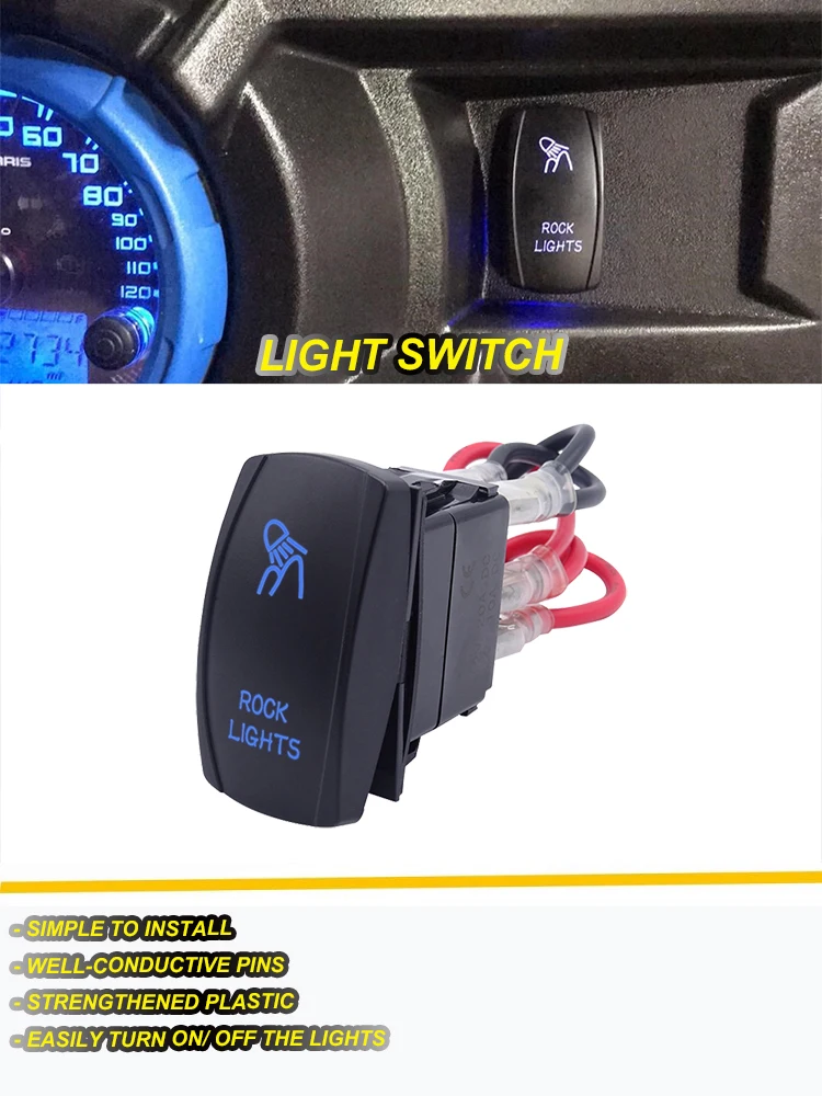 Подходит для большинства автомобилей, внедорожников, квадроциклов, UTV, 4X4, мотоциклов, грузовиков, джипов, вранглеров, лодок, яхт и других внедорожников. В основном используется для управления Светодиодный светильник, светодиодный светильник s, противотуманные фары, светильник s, головной светильник s, задний светильник s, внедорожный светильник s, лодочный светильник и т. д.
